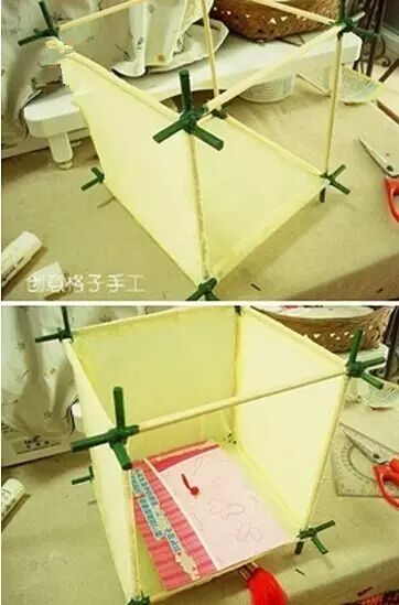 第五步:利用彩绳及一根筷子制作出灯笼把手