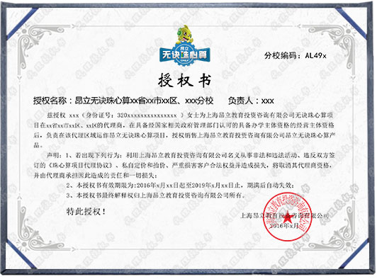 凡此网站能够查询到的校区,均为上海昂立教育投资咨询有限公司合法授权,享有合法在授权区域运作昂立无诀珠心算项目和授权销售昂立无诀珠心算产品的资格。